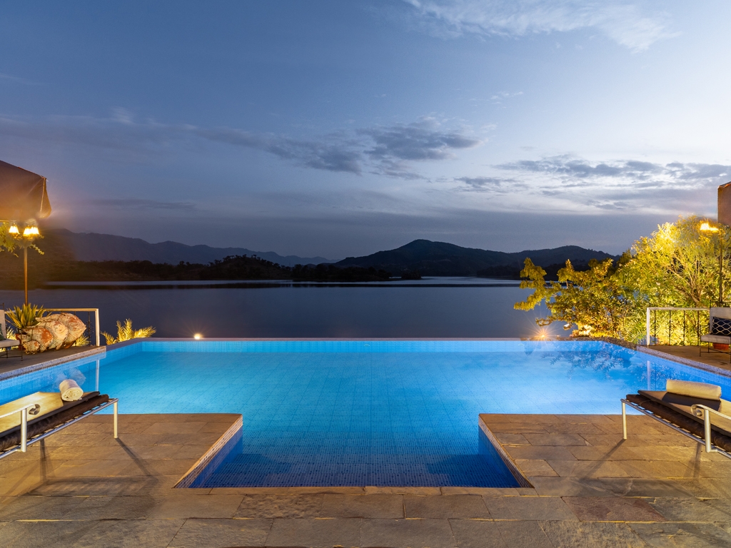The resort is approximately 45–50 km from Udaipur city and about 55–60 km from Maharana Pratap Airport (UDR).